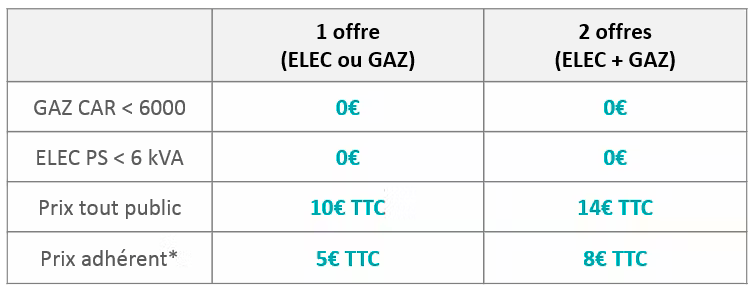 En cas de souscription, une participation aux frais d’organisation d’un montant forfaitaire de 10 euros TTC pour une énergie (réduit à 5 euros TTC pour les abonnés et les adhérents de l’UFC-Que Choisir) et de 14 euros TTC pour deux énergies (réduit à 8 euros TTC pour les abonnés et les adhérents) est nécessaire.